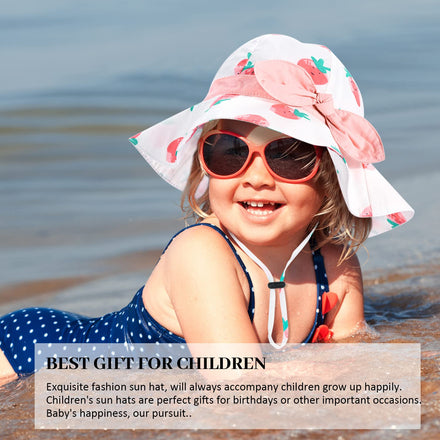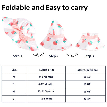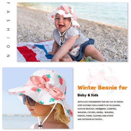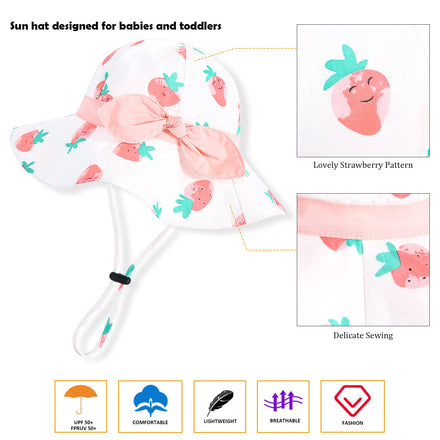 Baby Girl Sun Hat with UPF 50+ Outdoor Adjustable Beach Hat with Wide Brim Bucket Hats (12-24 Months, Strawberry -Pink)