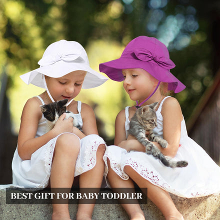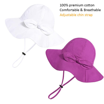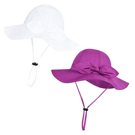 Baby Girl Sun Hat with UPF 50+ Outdoor Adjustable Beach Hat with Wide Brim Bucket Hats (12-24 Months,White & Purple 2pcs)
