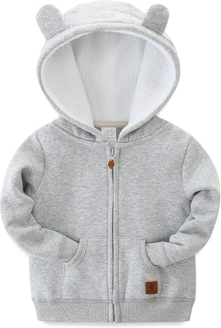 • 🌸【Adorable Hooded Design】: Cute and simple design for baby hooded jackets, available in 5 classic colors - blue, pink, gray, yellow, and white. The Lovely little bear ear design makes the baby look more trendy.
