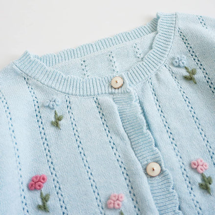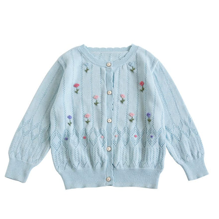 Baby Girls Cotton Cardigan Spring Autumn Thin Sweater Kids Long Sleeve Coat Top Sky Blue