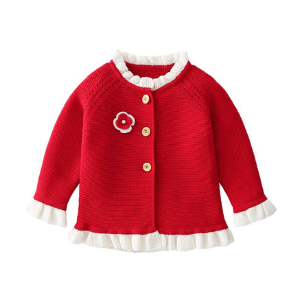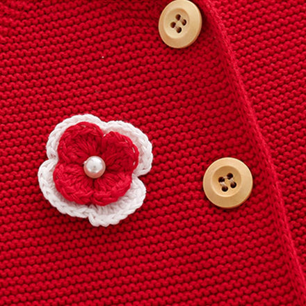 • Classic round neckline, cutest Ruffle design on cuffs and hem, hand-crocheted flowers decoration, Button closure makes the sweater coat easier for baby to wear.