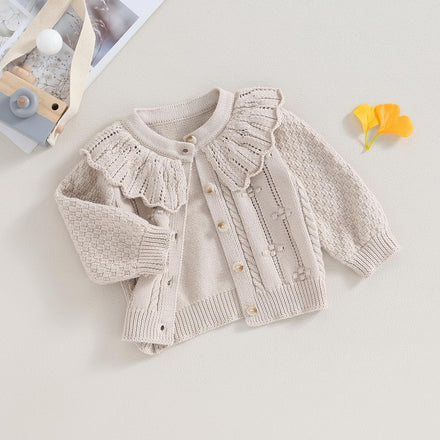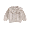 Baby Girls Knitted Cardigan Sweater Doll Collar Crochet Button Closure Cardigan Outerwear (Apricot, 6-12 Months)