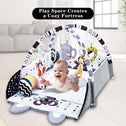 Includes squeaky toys and mirror to stimulate sensory development. Raised edge and recessed center create a safe, cozy play space. Plush surface with a large size for comfy tummy time and crawling. Includes various toys for tummy time, seated play, and ball games. Spacious and foldable, great for indoor or outdoor play. Soft fabric with non-slip base; machine washable or easy to wipe clean. Made with baby-safe materials to protect delicate skin. Spacious enough for crawling, rolling, and interactive play. Lightweight and foldable for easy storage and travel.