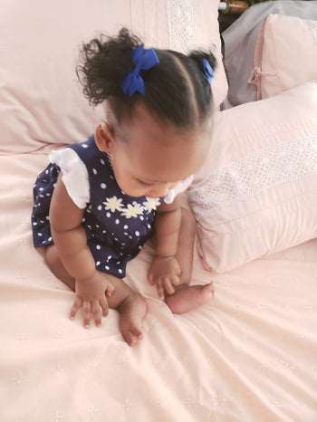 • Hair ties with bow for 0-4 years old baby Girls .Small thin baby hair ties.2 inches grosgrain ribbon hair bows,and 0.65" diameter nylon hair elastics.