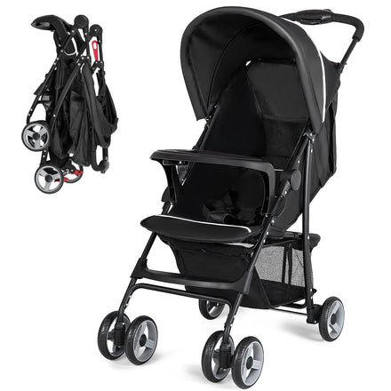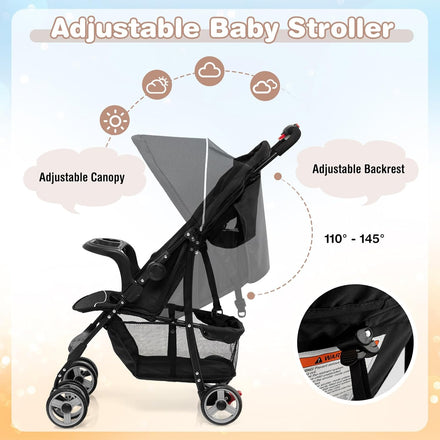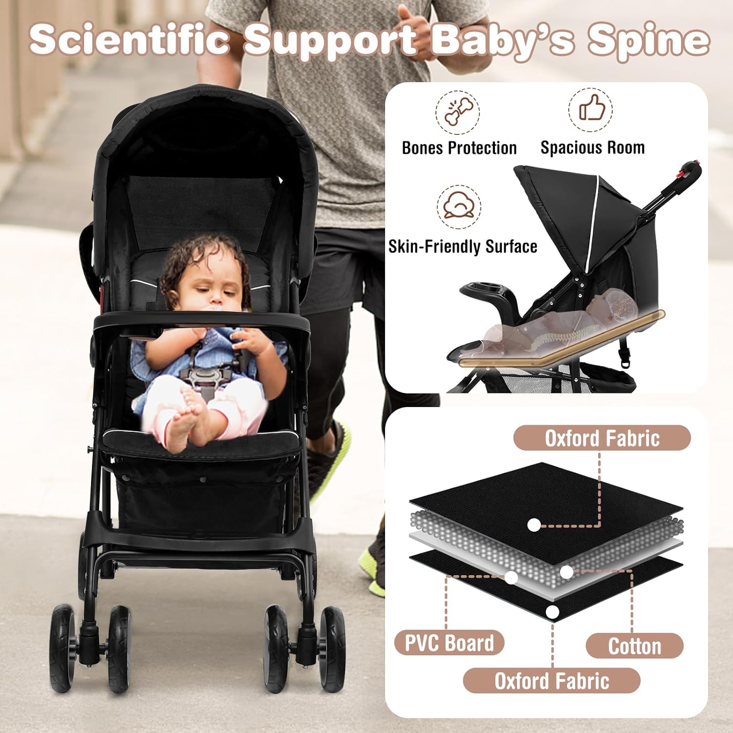 Baby Joy Lightweight Stroller, Compact Toddler Travel Stroller for Airplane, Infant Stroller w/Adjustable Backrest/Footrest/Canopy, 5-Point Harness, Storage Basket, Easy One-Hand Fold, Black