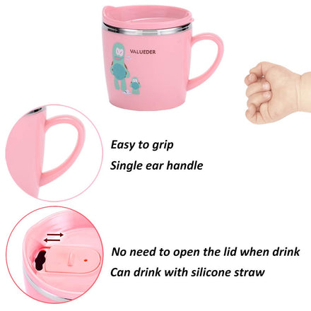 Why choose Valueder Stainless Steel Sippy Mug Cup for your child? Easy to hold. Good to learn to drink. Easy to clean. Durable and reusable. Kids friendly, move away from plastic. Drinking without the lid that as a mug will grow up with your child.