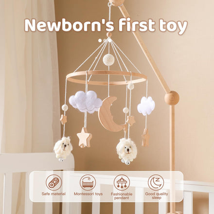 • Soft Sound --No harsh or random music, just gentle bells for a peaceful sleep environment. Our mobiles for crib use small bells to make soft sounds, which are of great help to baby's sleep.