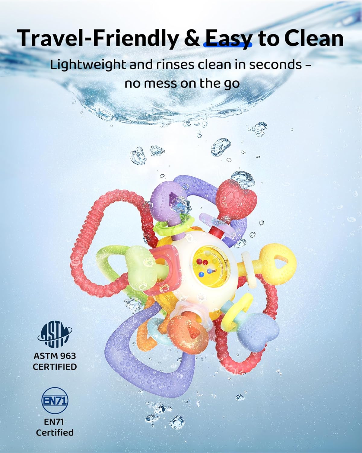 • Safe & Non-Toxic for Your Baby – Crafted from food-grade silicone and BPA-free plastic, this toy ensures your baby is chewing on a safe, non-toxic product. No need to worry about harmful chemicals, making it a must-have for your newborn essentials
