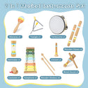 Baby Musical Instruments Set - 9pcs Neutral Colors Wooden Montessori Toys Percussion Music Modern Boho Xylophone Birthday Gifts for 1 2 3 Year Old Kids Toddlers Educational Birthday