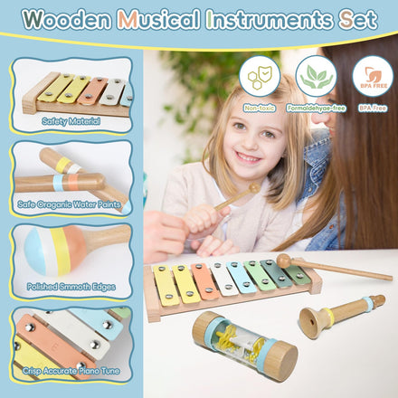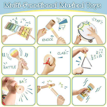 • Safety: The wooden musical toys are made from natural wood with organic pigments and non-toxic water-based paints. All items rigorously adhere to stringent CPC/ASTM standards, crafted with safety as a top priority, they are 100% BPA-free, non-toxic, and effortless to clean.