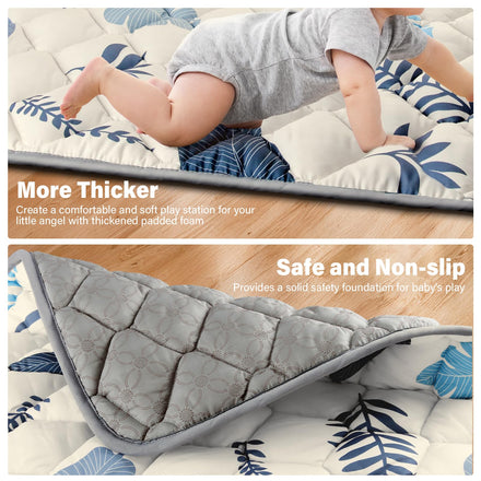 • 【Premium Soft Thicker Foam】 Our baby play mats for floor is 50% thicker than most other brands. And it's made of premium soft padding foam and fabric top layer to ensure a soft and cushioned surface, providing a comfortable place for your little one to relax, play and work on their developing skills.