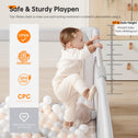 • 【💐 Safe & Sturdy Playpen】Your baby's safety is our top priority. The stable frame ensures that the large playpen stays securely in place, while the smooth and robust middle joints provide excellent support. Thick sponge padding surrounds the internal steel tubes and four top corners, minimizing the risk of accidental injuries during playtime. With multiple safety features, your little one can enjoy their own safe playground.