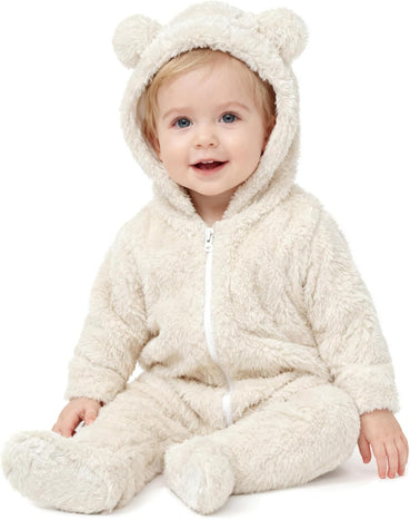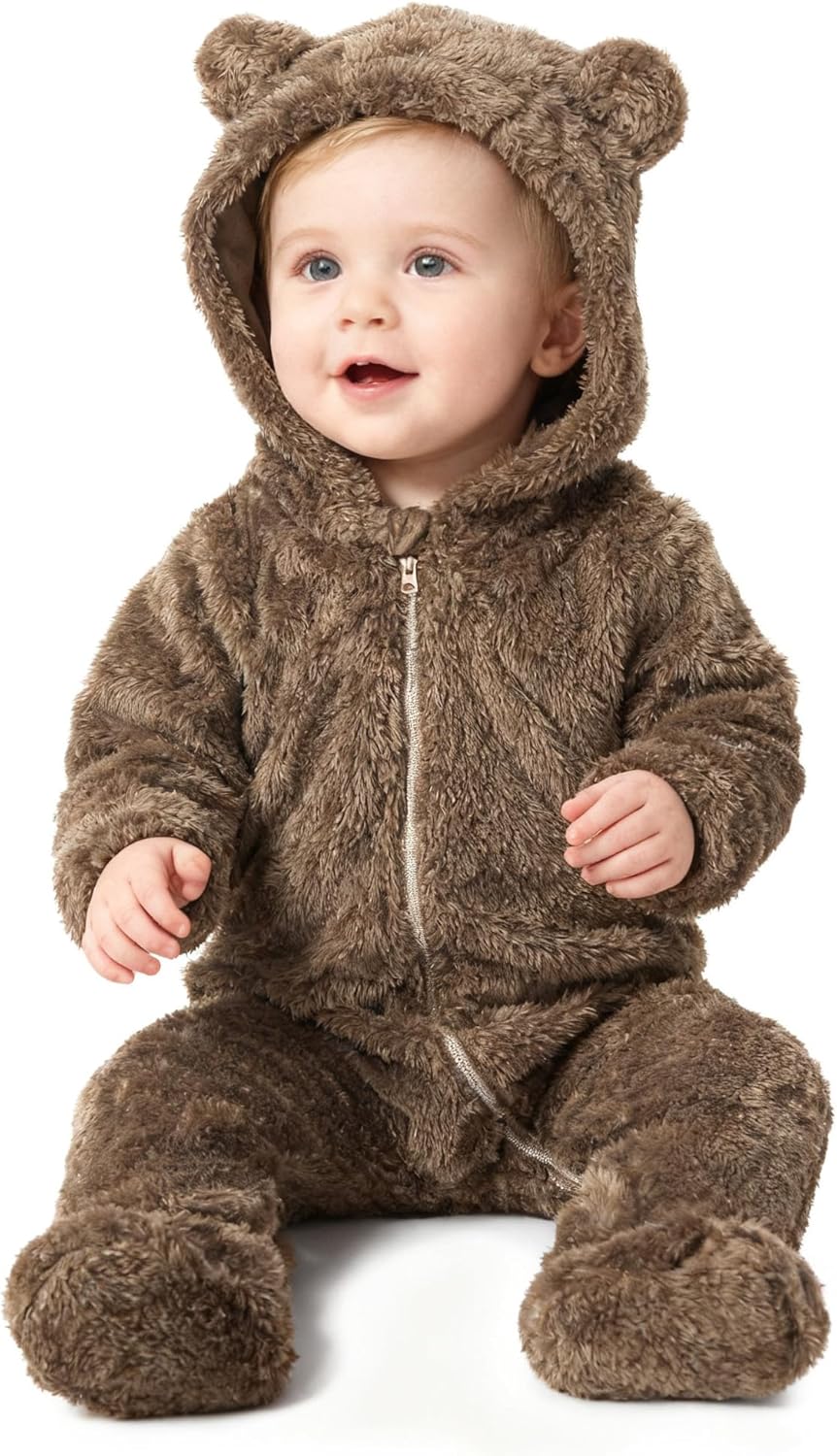 - Lovely Shape: Our baby romper snowsuit is shaped like a bear, with adorable ears on the hood and bear claw patterns on the front, making it a sweet and stylish gift for birthdays, Christmas, parties, holidays, and everyday wear.