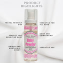 • Versatile application: Baby powder fine fragrance mists can be applied to various parts of the body, including the neck, wrists, and clothes, providing flexibility in how you use them.