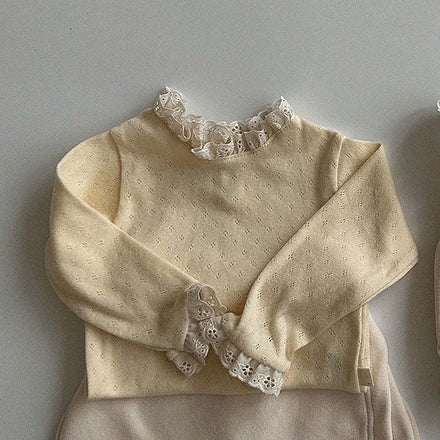 Baby Solid Color Mesh Patched Design Knitwear