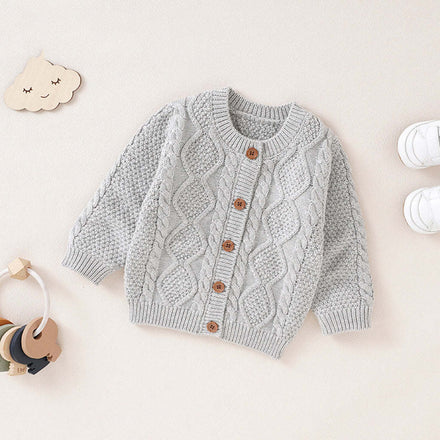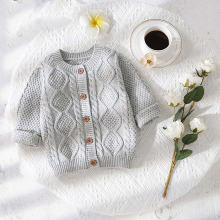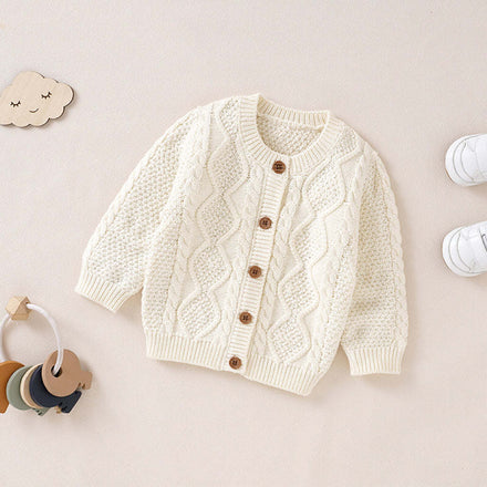 Baby Solid Color Three-Dimensional Crochet Knitted Pattern Cardigan