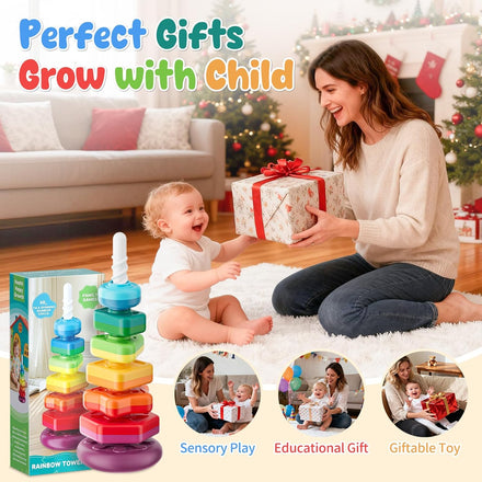 Baby Spinning Stacking Toys for Toddlers 1-3, Sensory Montessori Toy for 1 Year Old Girl Boy, Rainbow Ring Stacker Tower, Educational Learning Toy, Perfect Christmas Birthday Gifts