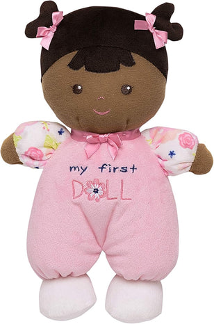 Baby Starters Plush Baby Doll with Rattle, Brunette Olivia, Pink, 9 inch