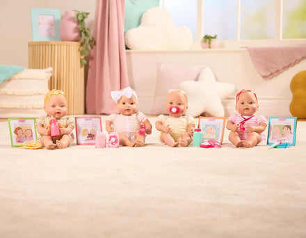 You'll fall in love with Baby Sweetheart, the cuddly soft Newborn dolls with the cutest accessories! This set includes a 12" baby, baby monitor (receiver), bony monitor (transmitter), pacifier, story book. Explore the themes of bath time, feeding time, medical time, and bed time with matching Accessories and a sweet storybook that's easy to read and full of beautiful, hand-painted illustrations. Teach your child how to take care of a new baby in a safe and fun way! Baby Sweetheart dolls are made with care from PVC and polyester that are safely BPA, lead, and phthalate-free. Encouraging imaginative pretend-play helps your child develop confidence, communication and social skills, and to learn how to care for themselves and others. And playing with traditional toys like dolls will help reduce your child's time in front of screens and devices, which is the secret to happier, healthier children.