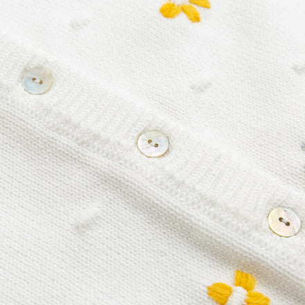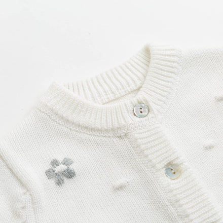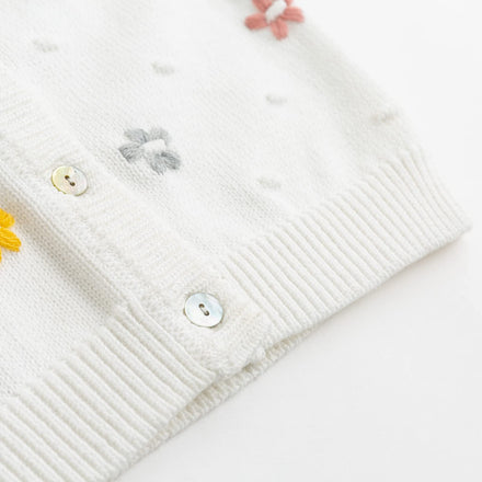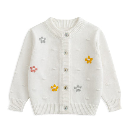 Baby Toddler Girls Thin Cardigan Sweater Spring Autumn Hand Embroidered Floral Coats for Kids 6-12 Months F-Off-White