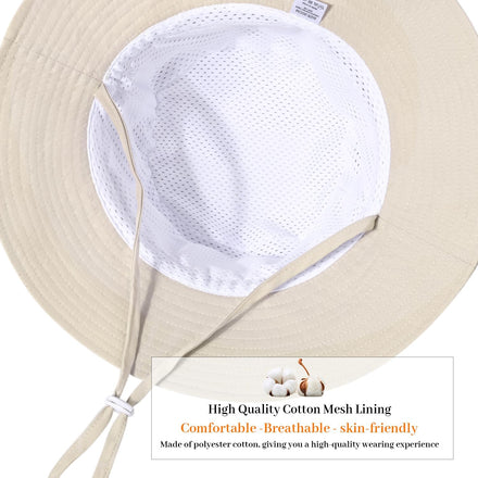 • The baby Summer sun hat is made of polyester and cotton, Mesh cotton lining,comfort,which is breathable and sweat-absorbent, keeping baby's head cool in hot weather; Soft fabric of the baby sun hat is more caring for the baby's skin;