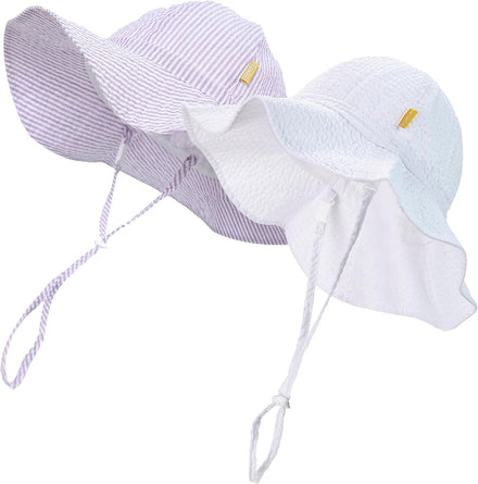 Baby & Toddler Wide Brim Sun Hats UPF 50+ Sun Protection Bucket Cap Cute Adjustable Hat in Seersucker