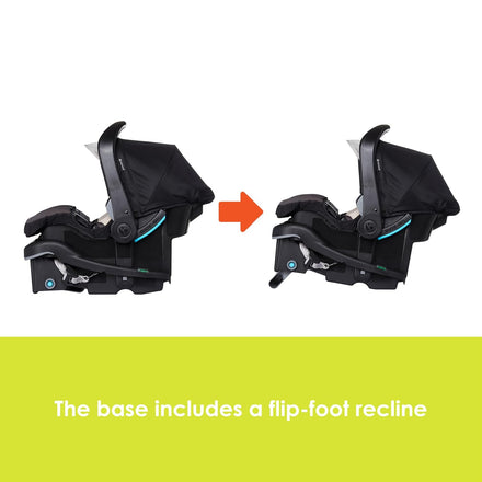 • The base includes a flip-foot recline and bubble level indicator for an angle that is just right for your little one