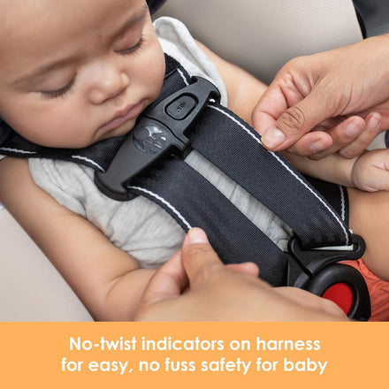 • The no-twist indicators located on the harness adds easy, no fuss safety, and an adjustable canopy with a visor provides sun protection and coverage