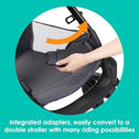 • Integrated adapters allow the Morph to easily convert to a double stroller with many riding possibilities for your growing family