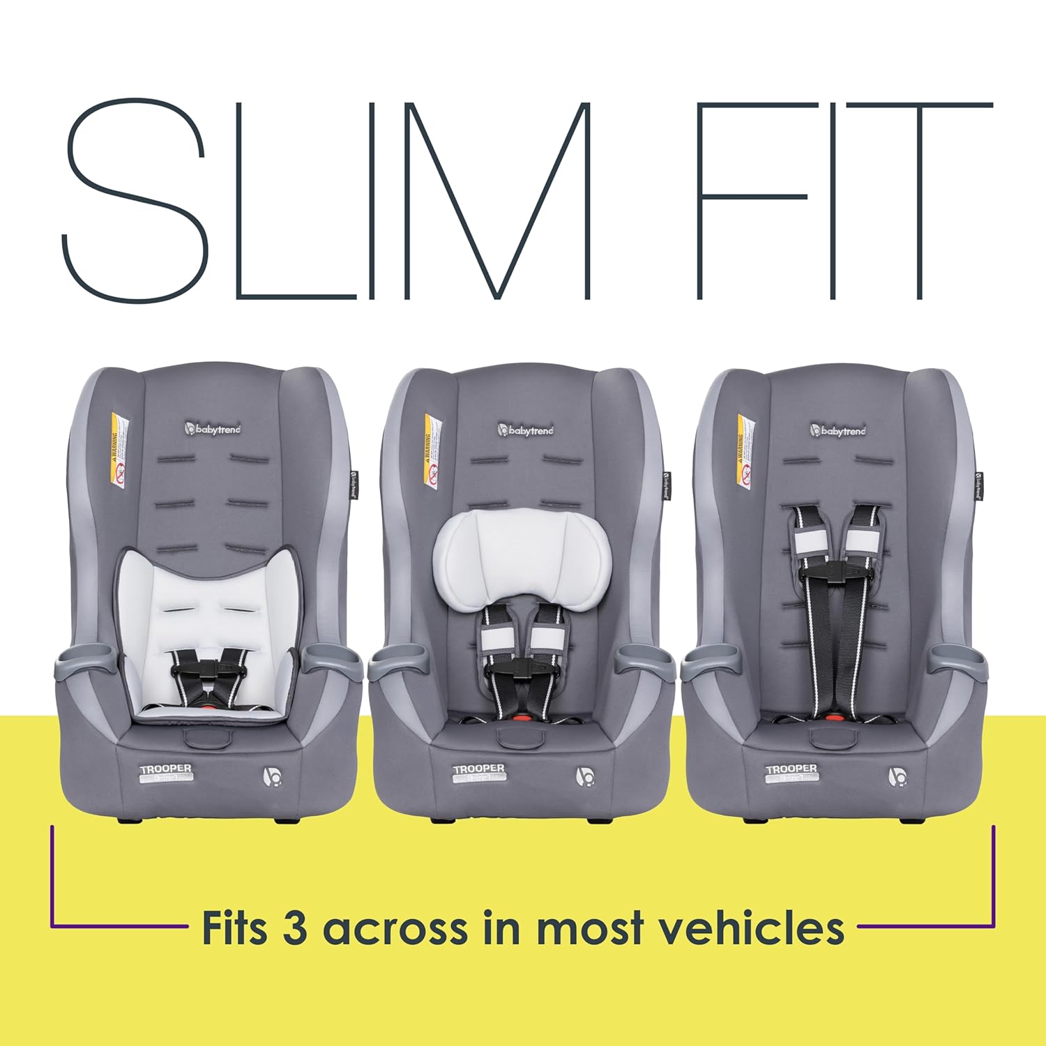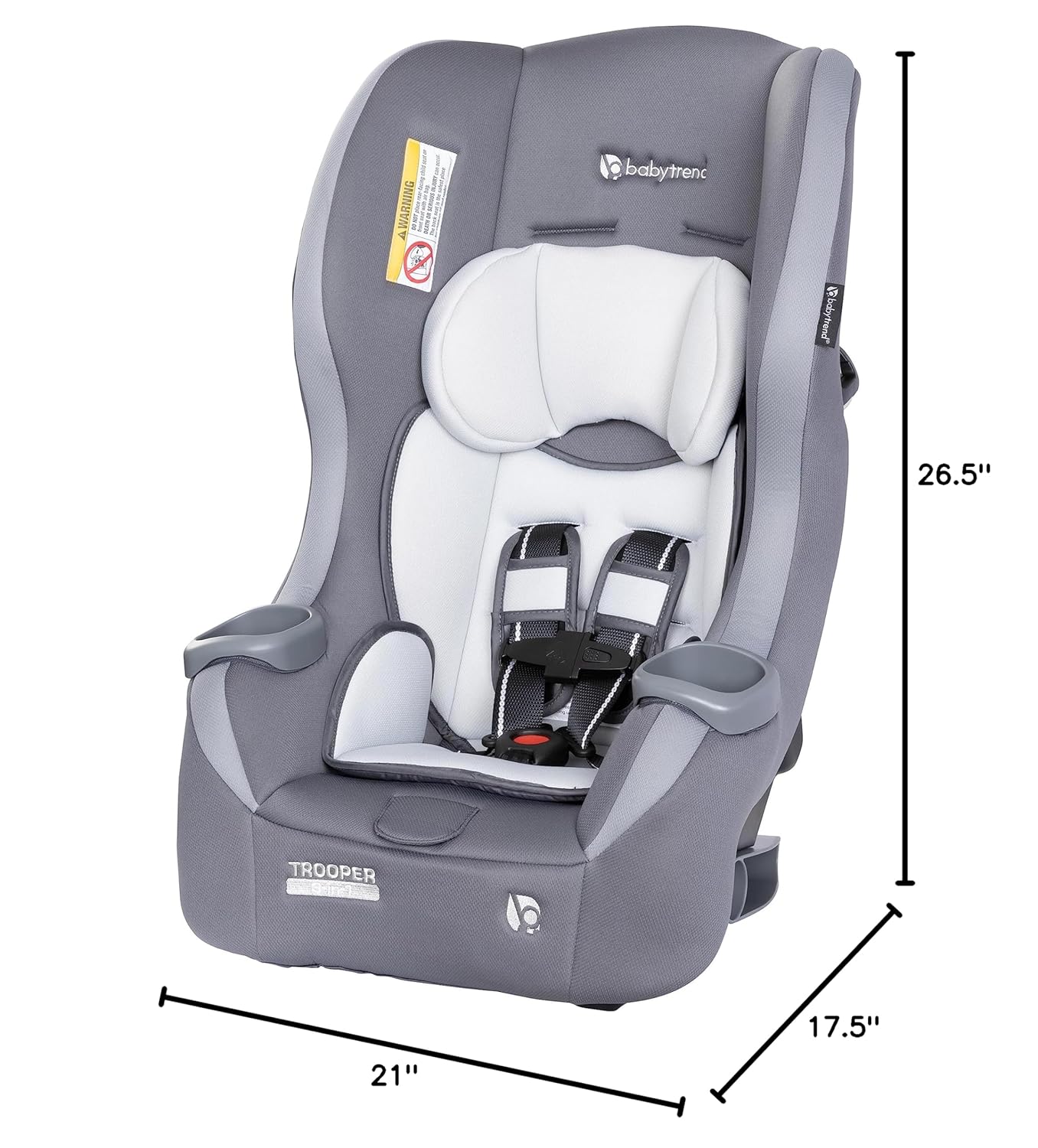 The Baby Trend Trooper 3-in-1 Convertible Car Seat converts from rear facing infant seat (4-18lbs) and rear facing toddler seat(18-40lbs), to forward facing toddler seat (22-65lbs) as your child grows. With 5-position shoulder height adjustment and 3- position crotch buckle for seat adjustment, the Trooper convertible gives parents the ultra convenience for installation and adjustment. The rear-facing recline flip foot also allows the Trooper to get great installation angles with ease. Trooper's nimble frame can fit three across in most vehicles which is great for families that have more than one kiddo. The lightweight shell also allows for use of LATCH installation up to 55 lbs. The super deep side wings offer better side impact protection and premium cushion, giving your babies great head protection and support. With premium fabric and two convenient integrated cup holders, our Baby Trend Trooper 3-in-1 Convertible Car Seat truly gives your children the most comfortable and convenient commute/travel experience.