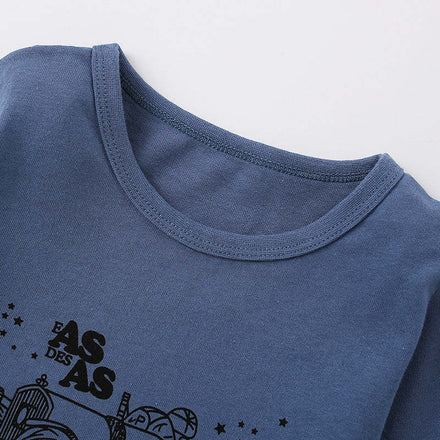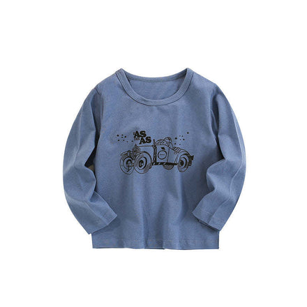Baby Truck Pattern Round Collar Long Sleeve Pullover Fashion Shirt