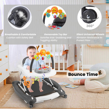 - 【First Choice of infant Walker】 : The baby walker and bouncer combo comes with music and toys,which will help stimulate your child's senses and accelerate their early development. And at the same time walker baby girl will also help develop baby 's coordination and motor skills. ideal walker for baby boy 6-12 months, ideal walker for baby girl 6-12 months