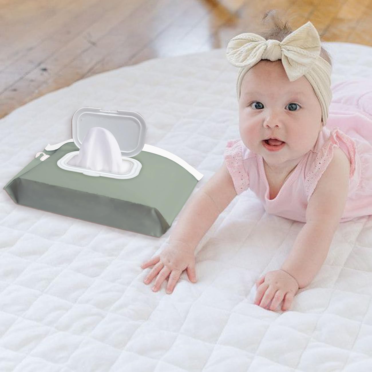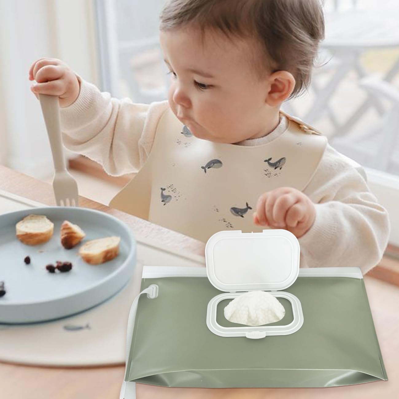 Baby wipes dispenser,portable baby wipes holder for outdoor, Refillable baby wipes container, on the go wet wipe pouch for travel, resuable wipes dispenser for hiking (sage)