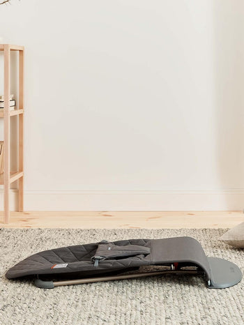 - Our baby bouncer offers natural rocking generated by your baby’s own movements, unlike a battery or electrically powered baby swing. This means that our baby bouncer weighs less, making it easier to move around and take with you.