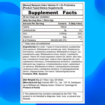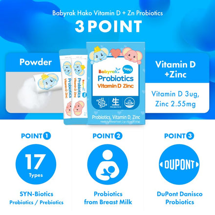 Babyrak Hako Vitamin D + Zn Probiotics - 30 Sticks Gut & Bone Health Immune Support