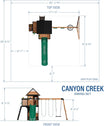Embark on backyard adventures with the Canyon Creek Swing Set by Backyard Discovery. This charming wooden swing set boasts a variety of features that inspire active outdoor play. The towering rock wall invites daring climbing challenges, while the 8-foot speedy wave slide offers thrilling rides back to the ground. Kids can soar on the exciting web swing or enjoy traditional swinging fun on two comfortable belt swings. Access to the upper clubhouse is a breeze thanks to the flat-step ladder, providing easy entry for children of various ages. Imaginations will take flight in the different play spaces. The charming lower playhouse transforms into a fun bustling café with its a toy BBQ grill, sink, and play food for creative cooking adventures. Little chefs can serve up their culinary creations in the picnic area complete with a built-in table and seating. Meanwhile, the upper clubhouse becomes a command center with its toy telescope, chalkboard, and steering wheel, perfect for make-believe expeditions. Crafted from durable cedar wood, this backyard swing set is ready to assemble and offers guided instructions with the interactive BILT app. Explore the Canyon Creek and create a backyard playground that brings new possibilities for playful discovery every day.