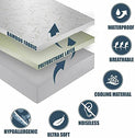 • WATERPROOF AND NOISELESS: Our waterproof mattress cover repels water and any type liquids including accidental spills and bodily fluids such as sweat or urine, which makes a clean/healthy sleeping environment. It's the Perfect choice for nursing sick kids, potty training and if you have pets in your home. It is also noiseless and makes zero sound. It is completely silent and makes no crinkling sound when you move on your bed!