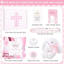 Baptism Gifts for Girl, Christening Gift Set for Baby Girls, Baby Dedication Gift, Includes Bunny Stuffed Animal, First Rosary Beads, Prayer Book, Keepsake Blanket, Catholic Baptism Gift Basket