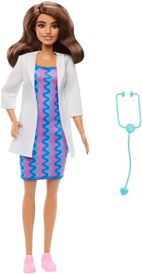 Barbie Careers Doctor Fashion Doll Wearing Removable Look with White Coat, Dress & Shoes, Plus Stethoscope Accessory