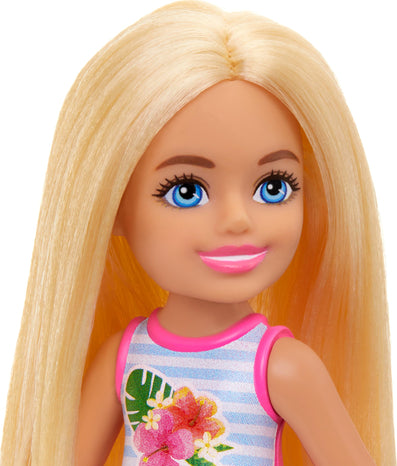 Barbie Chelsea Small Doll Featuring Swimsuit with Stripes & Floral Print, Blonde Hair & Blue Eyes