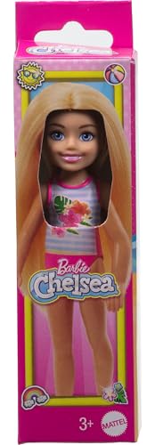 Details: Make a splash with Chelsea and her friends! This small doll is ready to hit the beach in a fun striped swimsuit with a tropical flower print. Kids can find all the dolls in this summer collection and dive into storytelling fun! Each sold separately, subject to availability. Doll cannot stand alone. Colors and decorations may vary.