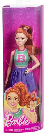 Barbie Fashionistas Doll #232 with Red Hair, Wearing Sporty “B” Jersey Top and Pleated Purple Skirt with Watch and Sneakers