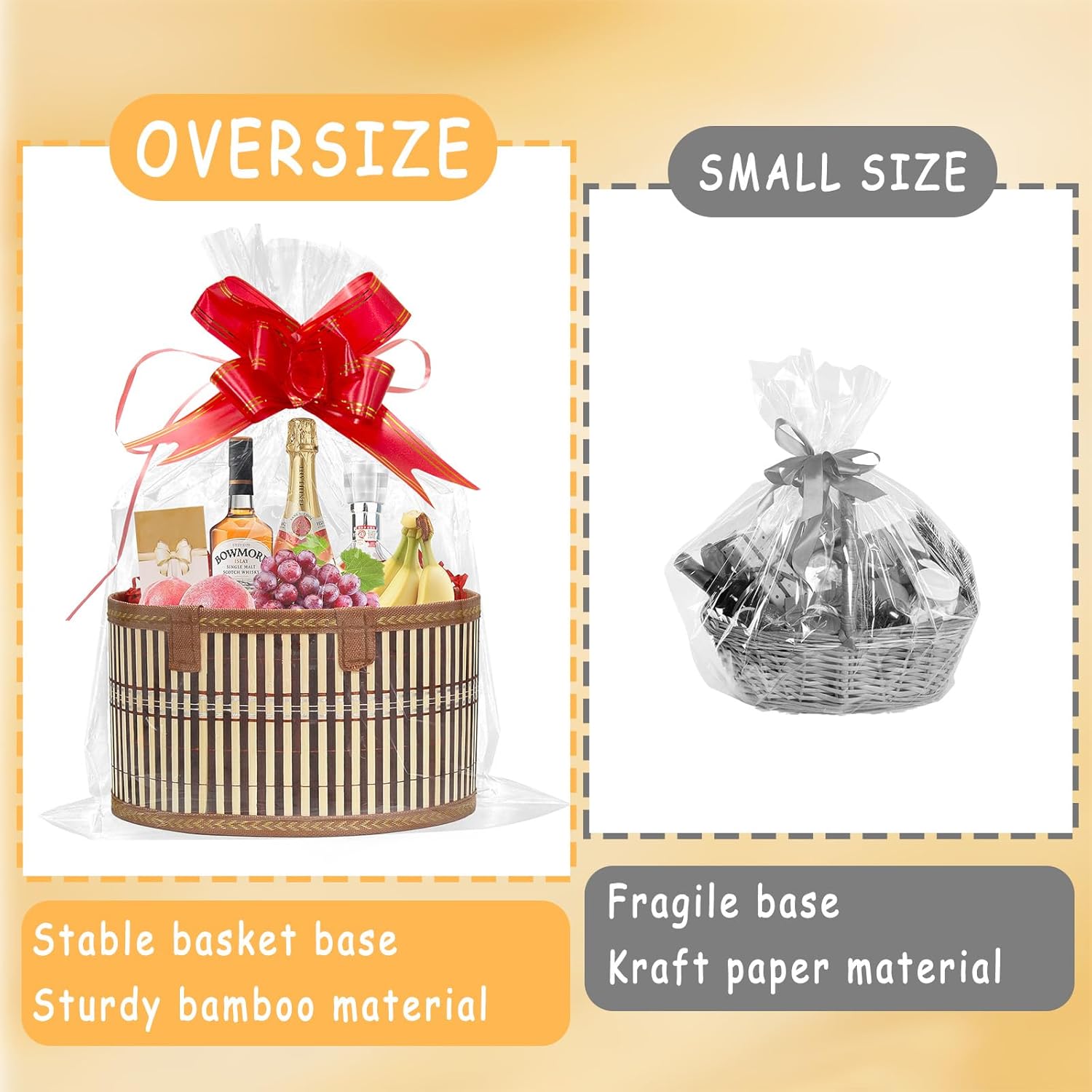 Step 1: Place your gift into the spacious basket Step 2: Wrap it with the included clear cellophane Step 3: Add raffia, card & pull the bow That's it — a high-end gift ready in minutes! Handwoven from mature bamboo with a smooth, polished finish — strong, elegant, and reusable. Struggling with how to wrap a meaningful gift? Our all-in-one bamboo gift basket kit takes the stress out of gifting. Thoughtfully designed with everything you need — from the basket to the bow — it helps you create beautiful, personalized gift presentations that leave a lasting impression. weddings, baby showers, housewarmings, holidays — create memorable moments with ease