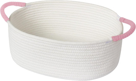 Crafted from premium cotton rope, this small woven basket combines functionality with modern charm. Its compact 13"x9"x5" size makes it perfect for gifting, organizing, or keeping your home tidy. Soft yet sturdy, safe for kids and pets, and designed to blend seamlessly into any décor style. Gift Basket: Fill with goodies for housewarmings, holidays, or special occasions Dog Toy Basket: Keep your pet’s toys neat and accessible Home Organizer: Store remotes, toiletries, office supplies, or kids’ essentials This versatile little basket makes staying organized effortless while looking great in your home. Simply wipe with a damp cloth or spot clean as needed. The soft cotton rope construction allows the basket to fold for storage and pop back into shape when in use.
