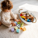 • Basket with Colorful Handles: This woven basket features brown handles that add a cheerful pop of color to any space, brightening nurseries, bedrooms, or gift displays. Not just decorative, the handles also offer a comfortable, secure grip, making it easy to carry, arrange, or present as part of a thoughtful and stylish gift. Also ideal for storing dog and cat toys, keeping your pets' playthings organized.