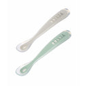 BEABA Baby's First Foods Spoon Set with Travel Case, Original Soft Silicone Baby Spoons, Baby Essentials, Travel Set, Sage + Cloud