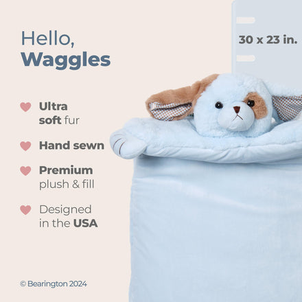 Bearington Baby Waggles Tummy Time Mat, 30 x 23 In Blue Puppy Dog Plush Stuffed Animal Baby Play Mat, Blankets for Boys