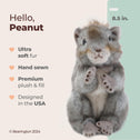 • PEANUT THE SQUIRREL: Adorably cute 8.5" tall gray squirrel plush toy with soft fur and a long bushy tail
