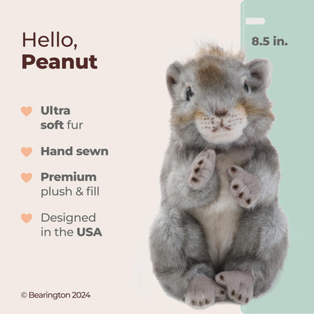 Bearington Peanut Plush Squirrel Stuffed Animal, 8.5 Inches