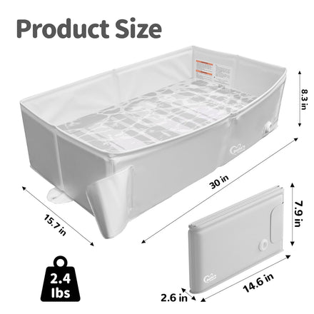 • Space-Saving: Whether you're in a small bathroom, traveling, or just short on space, this foldable tub is made to fit seamlessly into any lifestyle. It folds flat to just 14.6" x 7.9" x 2.6", making it easy to tuck away in a cabinet or corner when not in use
